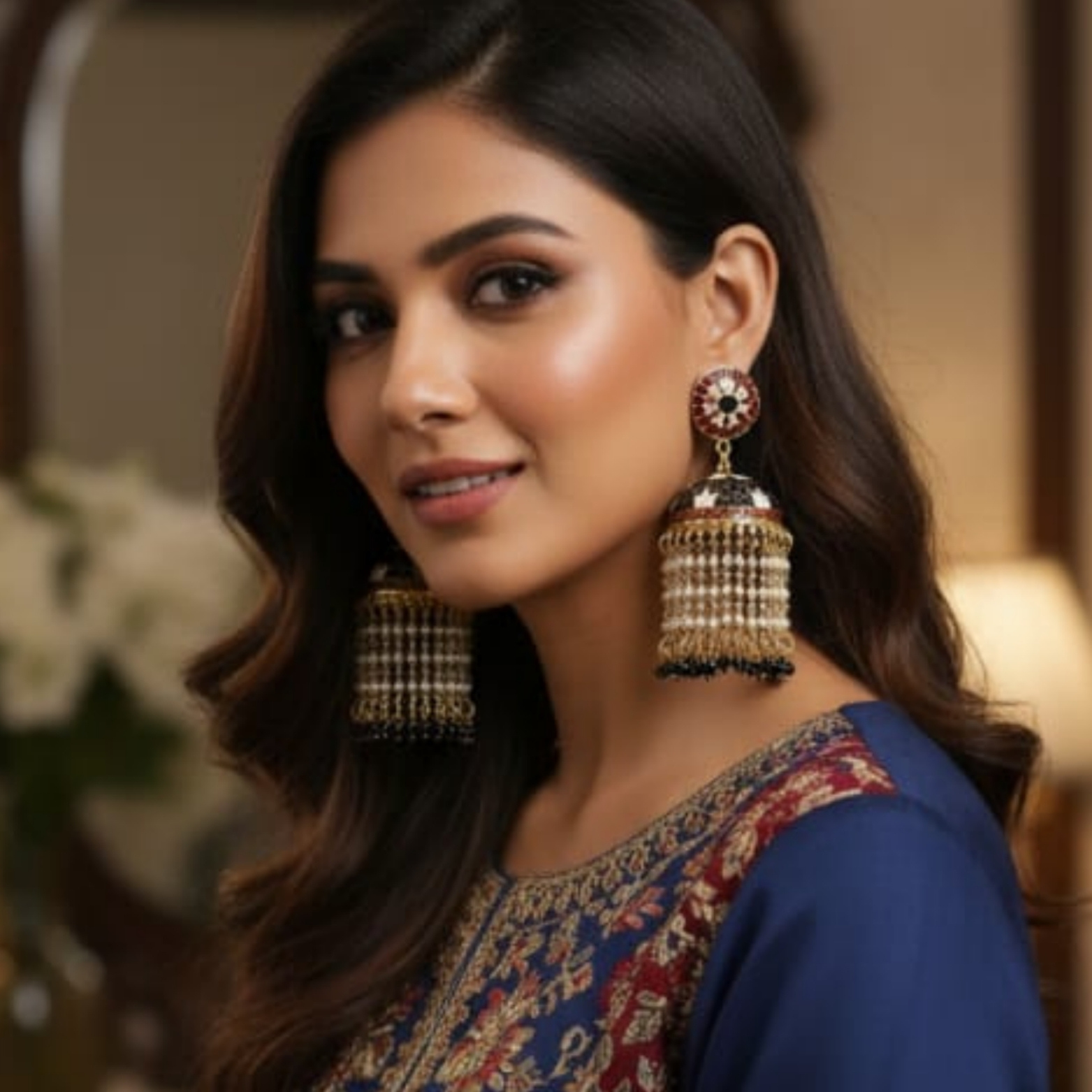 Let the KohiNoor Jhumkas steal the spotlight at weddings, festive gatherings, or traditional celebrations. Pair them with rich fabrics like silk or velvet, or let them elevate a simple saree or suit with effortless grandeur.